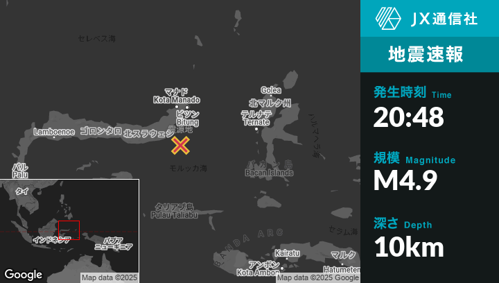 | 震源地 | インドネシアのModisiから東58kmの地点 |