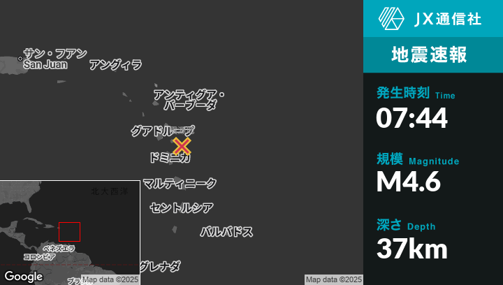 | 震源地 | グアドループのGrand-Bourgから東36kmの地点 |