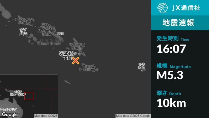 | 震源地 | ソロモン諸島のHoniaraから東南東104kmの地点 |