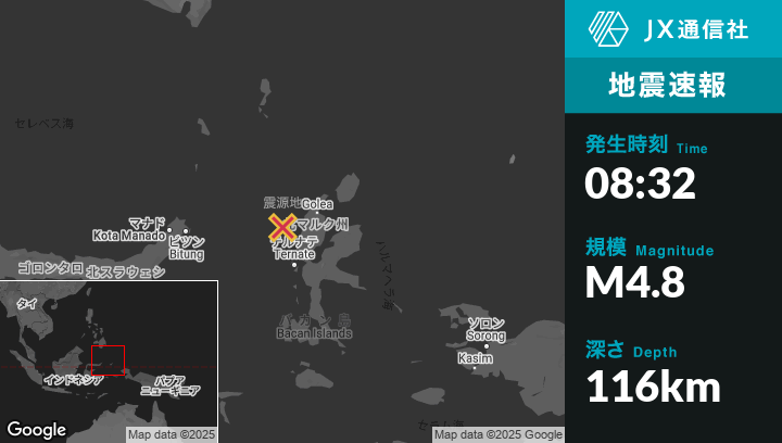 | 震源地 | インドネシアのTobeloから西98kmの地点 |