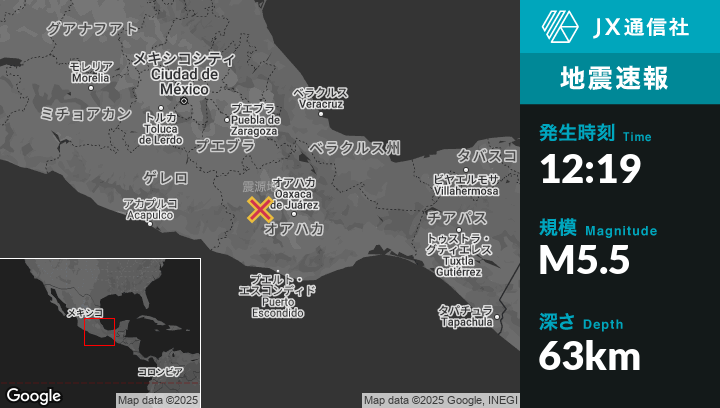 | 震源地 | メキシコのSan Miguel Achiutlaから南南東3kmの地点 |