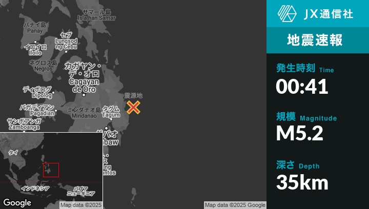 | 震源地 | フィリピンのSanta Mariaから東北東35kmの地点 |