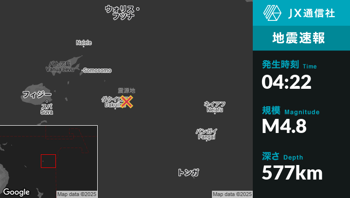 | 震源地 | フィジーのLevukaから東286kmの地点 |