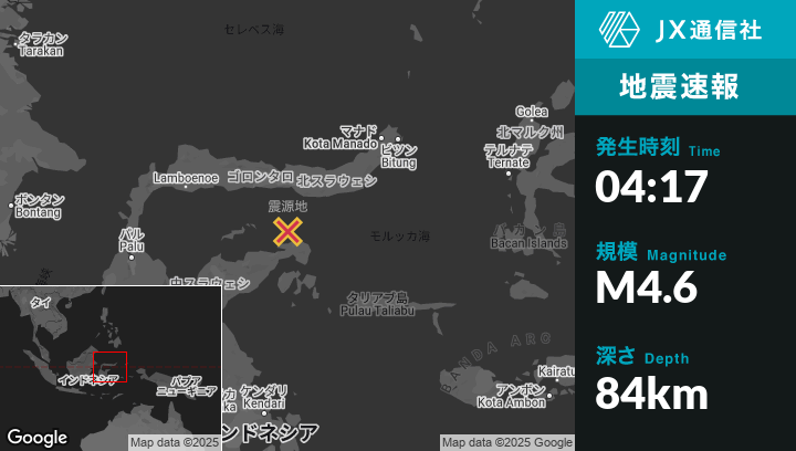3月19日 04:17頃、インドネシアのLuwukから北北東79kmの地点でM4.6の地震がありました。