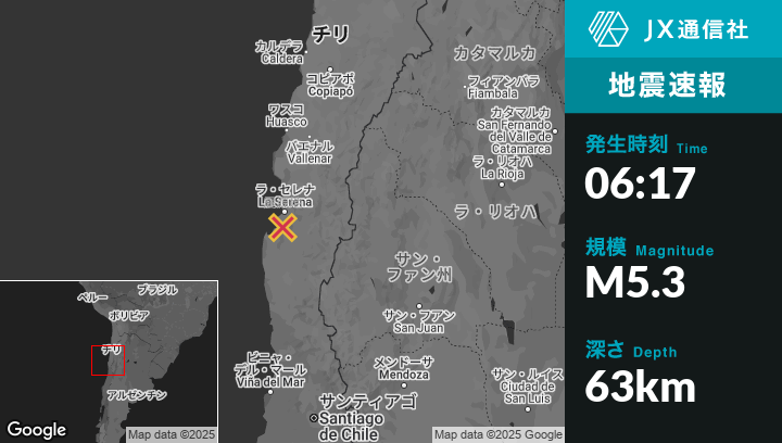 | 震源地 | チリのCoquimboから南南東12kmの地点 |