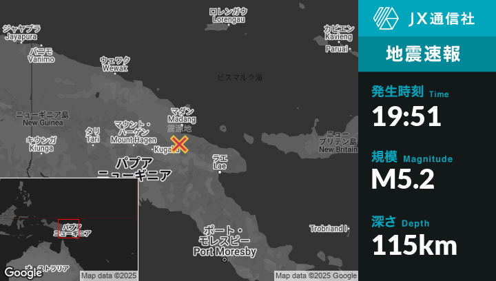 | 震源地 | パプアニューギニアのMadangから南53kmの地点 |