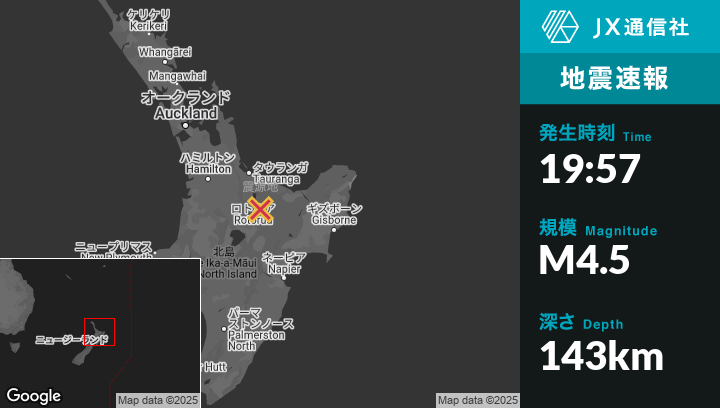 | 震源地 | ニュージーランドのOhinemutuから南東13kmの地点 |