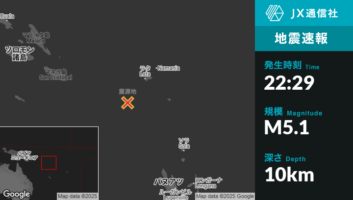 | 震源地 | ソロモン諸島のLataから南西135kmの地点 |