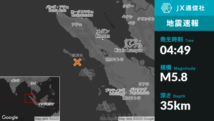 | 震源地 | インドネシアのSinabangから南東65kmの地点 |