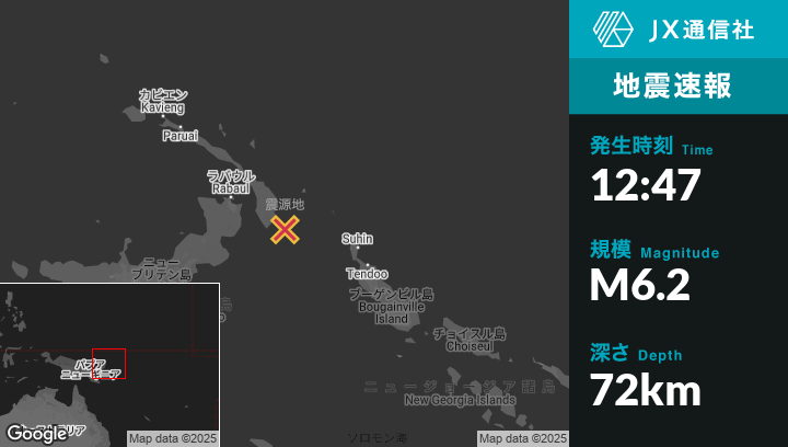| 震源地 | パプアニューギニアのKokopoから東南東114kmの地点 |