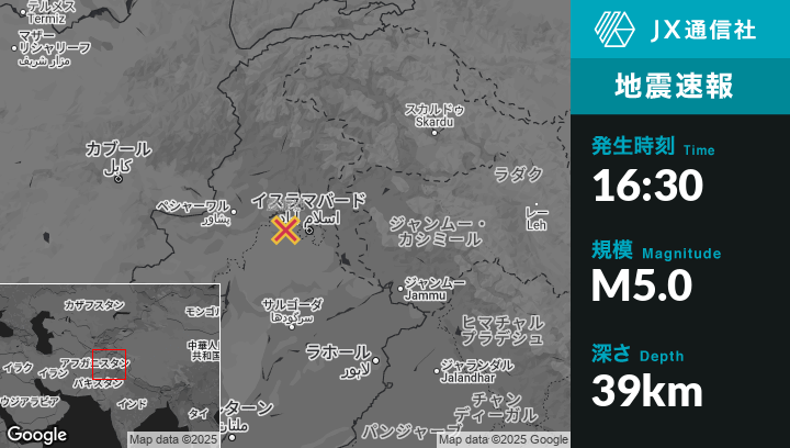| 震源地 | パキスタンのSanjwalから東北東12kmの地点 |