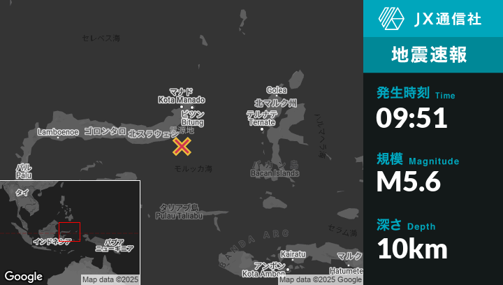 | 震源地 | インドネシアのModisiから東南東46kmの地点 |