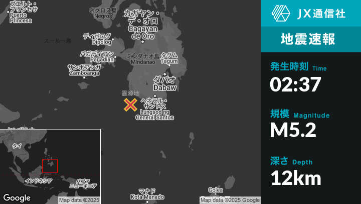 | 震源地 | フィリピンのMalisbengから南西39kmの地点 |