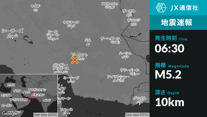 | 震源地 | イランのKūh Sefīdから南南東124kmの地点 |