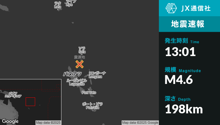 | 震源地 | バヌアツのSolaから南南西64kmの地点 |