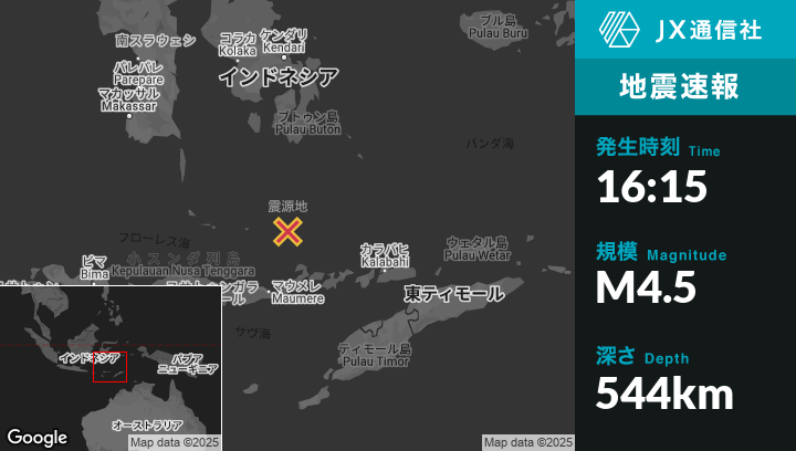 | 震源地 | インドネシアのMaumereから北北東148kmの地点 |