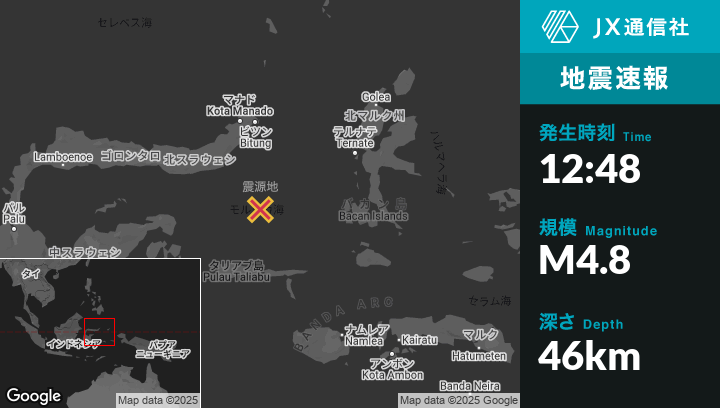 | 震源地 | インドネシアのModisiから南東129kmの地点 |