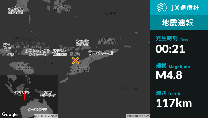 | 震源地 | 東ティモールのPante Makasarから西49kmの地点 |