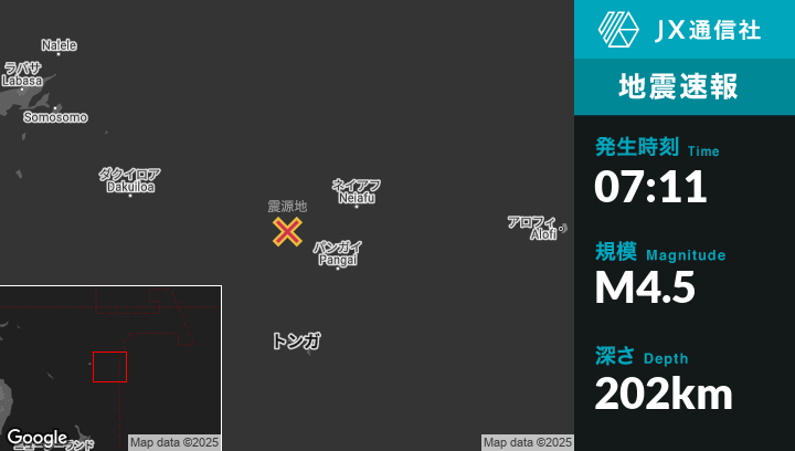 | 震源地 | トンガのFangale’oungaから北西136kmの地点 |