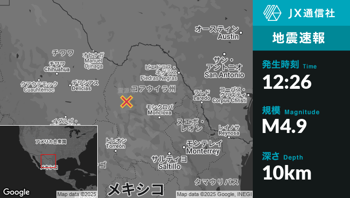 | 震源地 | メキシコのOcampoから北西63kmの地点 |