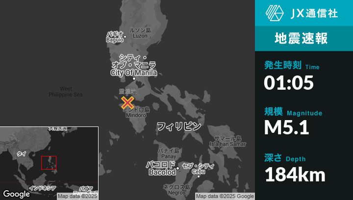 | 震源地 | フィリピンのCalataganから南南東18kmの地点 |