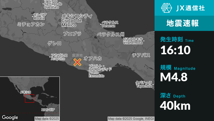 6月11日 16:10頃、メキシコのLa Reformaから西1kmの地点でM4.8の地震がありました。