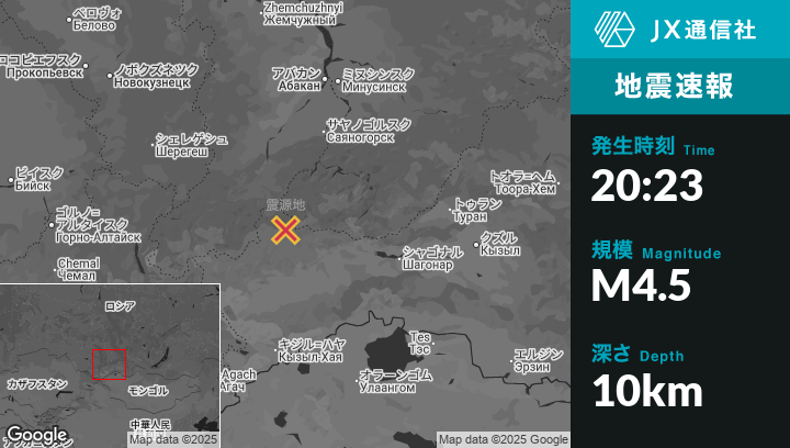 | 震源地 | ロシアのSut-Khol’から北西77kmの地点 |