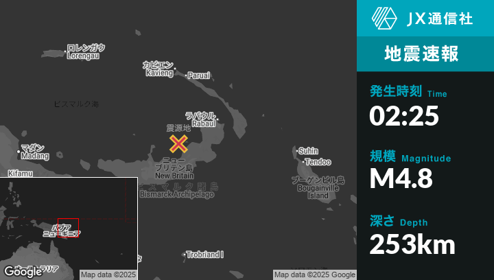 | 震源地 | パプアニューギニアのKimbeから北東114kmの地点 |
