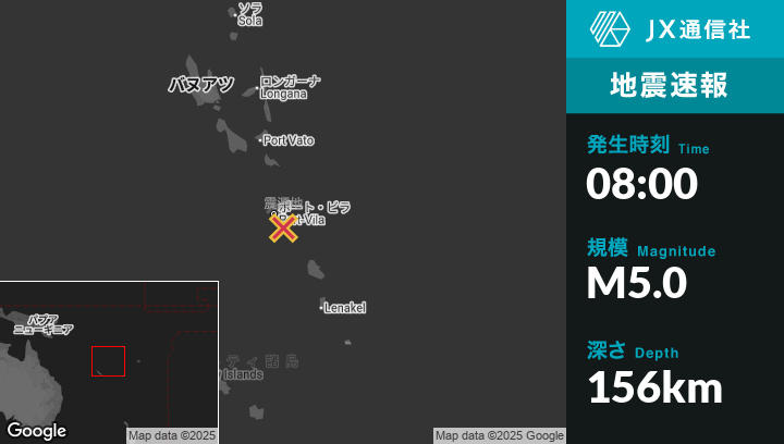 | 震源地 | バヌアツのPort-Vilaから南東27kmの地点 |