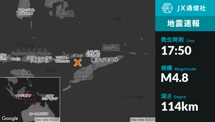 6月15日 17:50頃、東ティモールのPante Makasarから北西72kmの地点でM4.8の地震がありました。