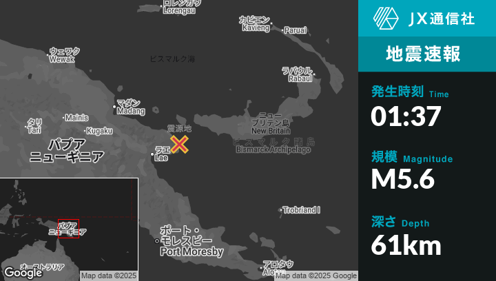 | 震源地 | パプアニューギニアのFinschhafenから北30kmの地点 |