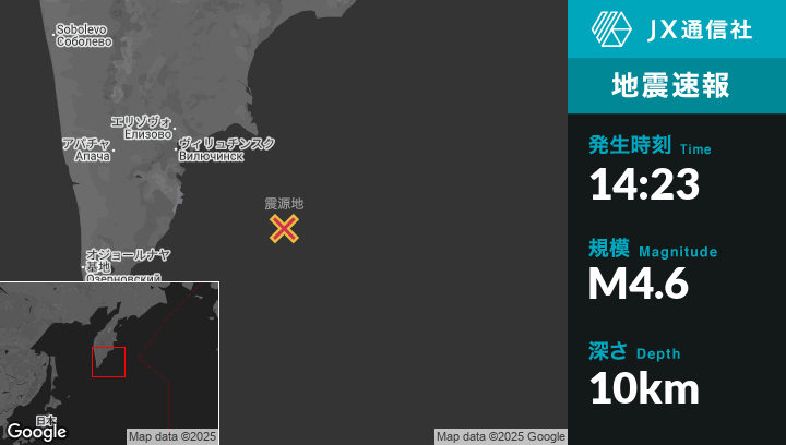 | 震源地 | ロシアのPetropavlovsk-Kamchatskyから南東174kmの地点 |