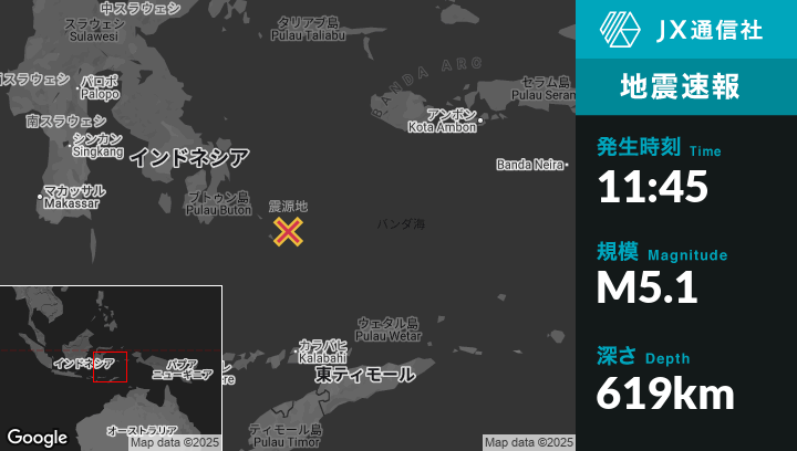 | 震源地 | インドネシアのBaubauから東197kmの地点 |