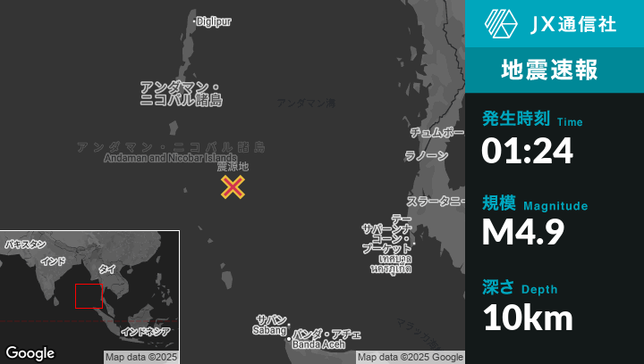 | 震源地 | インドのPort Blairから南南東284kmの地点 |