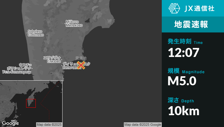 | 震源地 | ロシアのPetropavlovsk-Kamchatskyから東74kmの地点 |