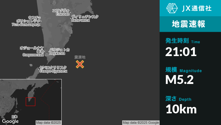 | 震源地 | ロシアのOzernovskiyから東南東187kmの地点 |