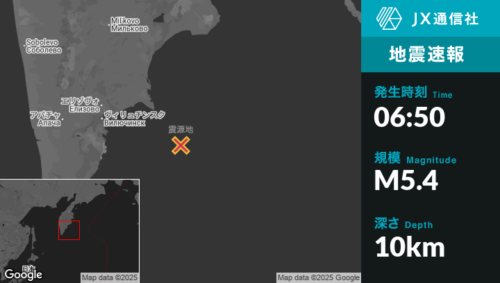 | 震源地 | ロシアのPetropavlovsk-Kamchatskyから東南東165kmの地点 |