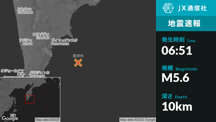 | 震源地 | ロシアのPetropavlovsk-Kamchatskyから南東164kmの地点 |