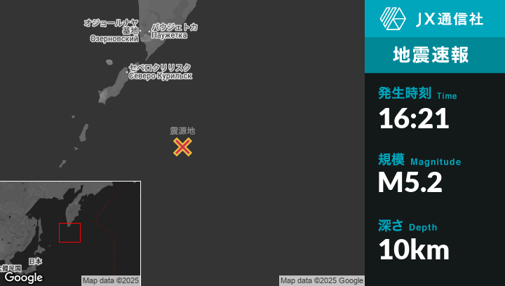 | 震源地 | ロシアのSevero-Kuril’skから南東202kmの地点 |