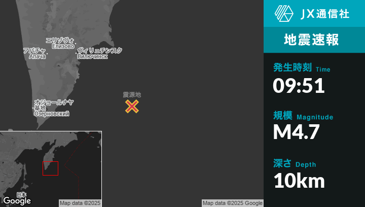 | 震源地 | ロシアのPetropavlovsk-Kamchatskyから南東220kmの地点 |