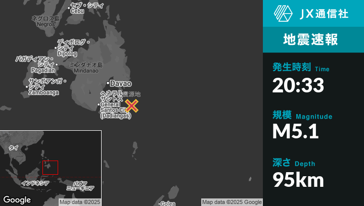 | 震源地 | フィリピンのPondaguitanから東南東52kmの地点 |