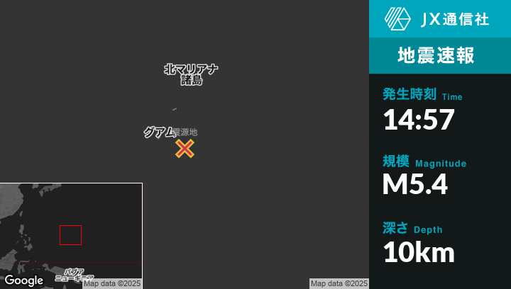8月10日 14:57頃、グアムのYigo Villageから南東84kmの地点でM5.4の地震がありました。