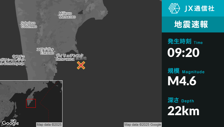 | 震源地 | ロシアのPetropavlovsk-Kamchatskyから東南東116kmの地点 |