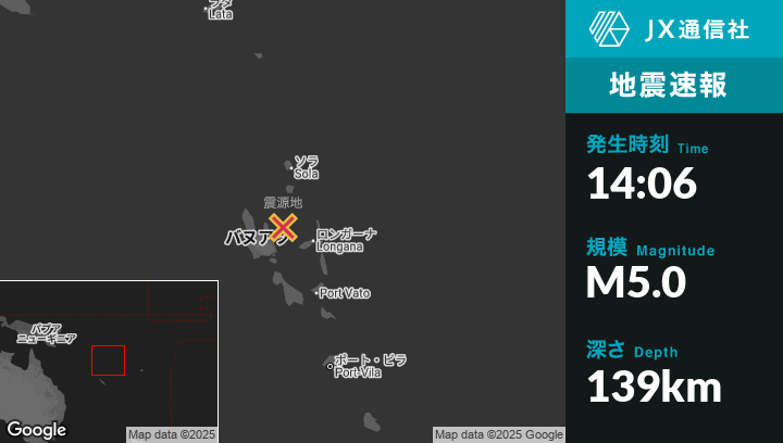 | 震源地 | バヌアツのPort-Olryから東北東34kmの地点 |