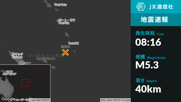 | 震源地 | バヌアツのIsangelから南南西76kmの地点 |