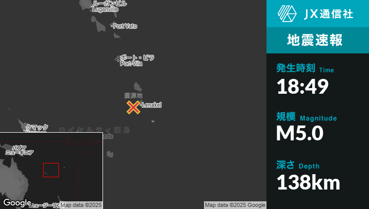 | 震源地 | バヌアツのIsangelから西32kmの地点 |