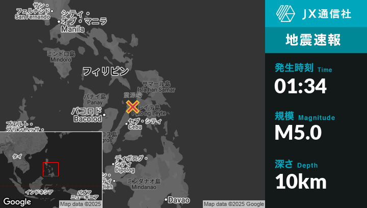 | 震源地 | フィリピンのCalapeから東南東15kmの地点 |