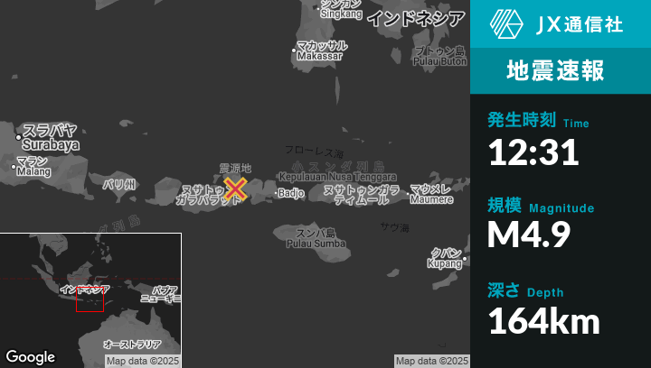 10月01日 12:31頃、インドネシアのDompuから西北西52kmの地点でM4.9の地震がありました。