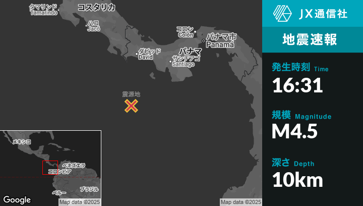 | 震源地 | パナマのBuricaから南193kmの地点 |