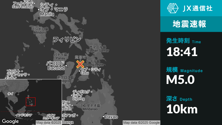 | 震源地 | フィリピンのIlihanから南西1kmの地点 |